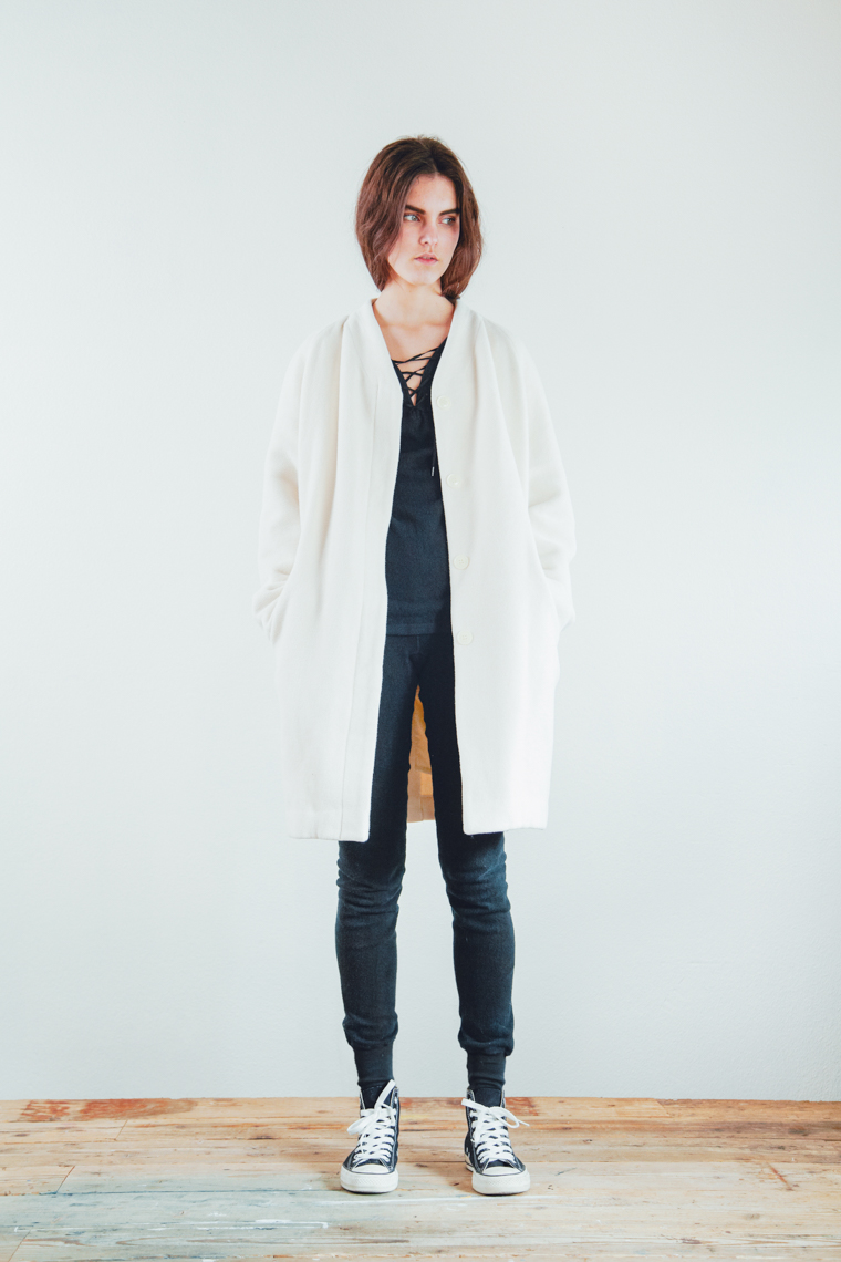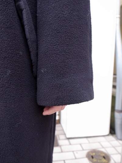 冬のコートにはめずらしく、ウールが入っていないbioReオーガニックコットン100%のノーカラーコートです。