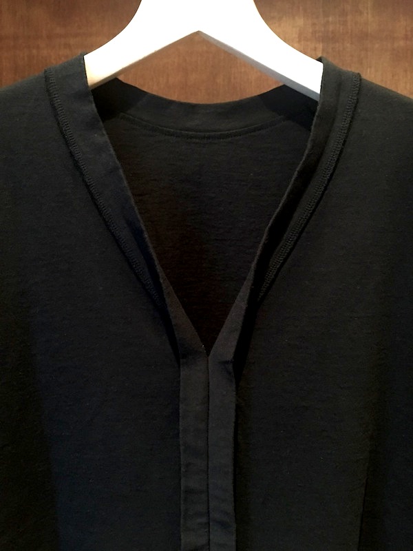 堀はVネックを前に、↓のルックではクルーネックを前に着ています。