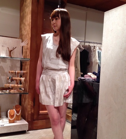 袖部分は広めのあきですが、インナーのキャミソールで安心。