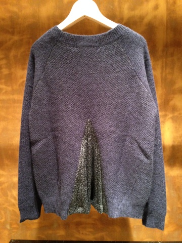 袖と表面で織りが違う、後ろプリーツのラグランニット。
