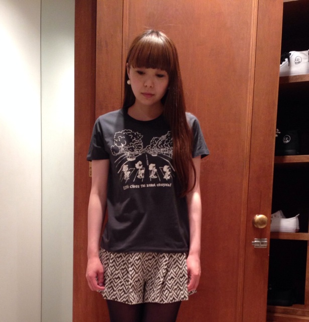 アビーロードを渡るキッズたちをモチーフにした定番のキッズサイズTシャツ。