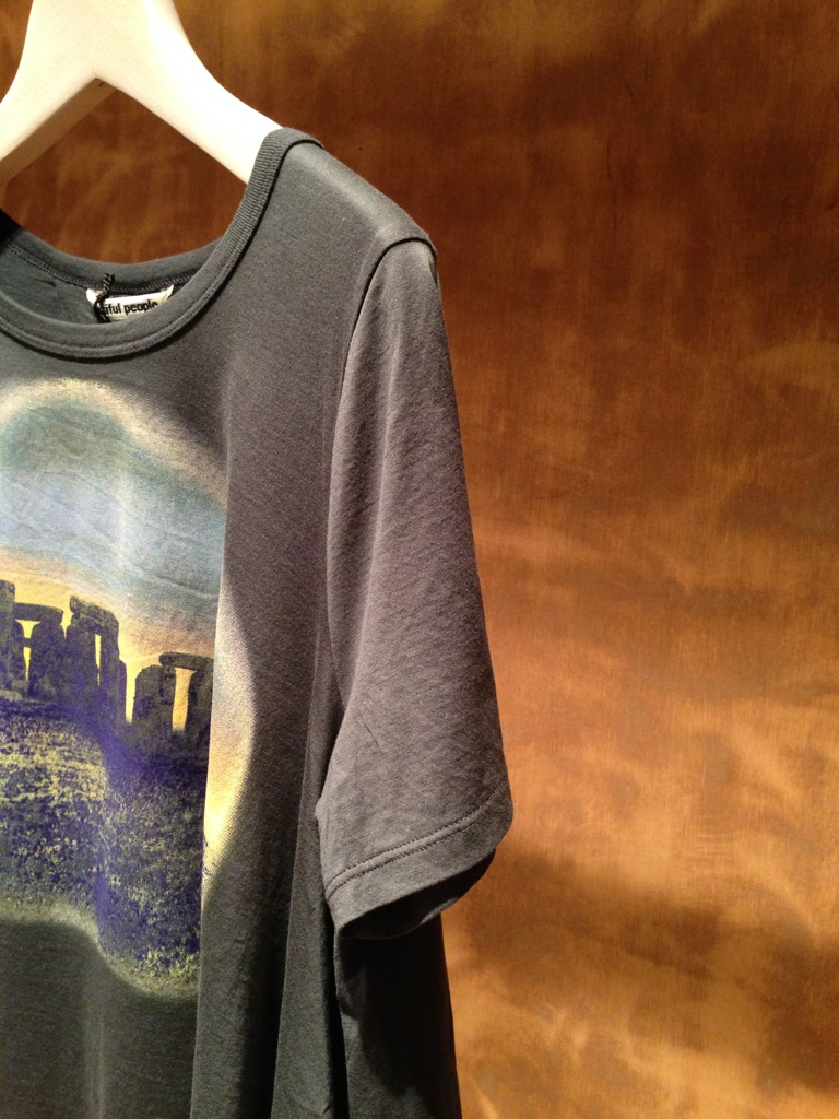 夕暮れのストーンヘンジを表現したフレアシルエットのグラフィックTシャツ。