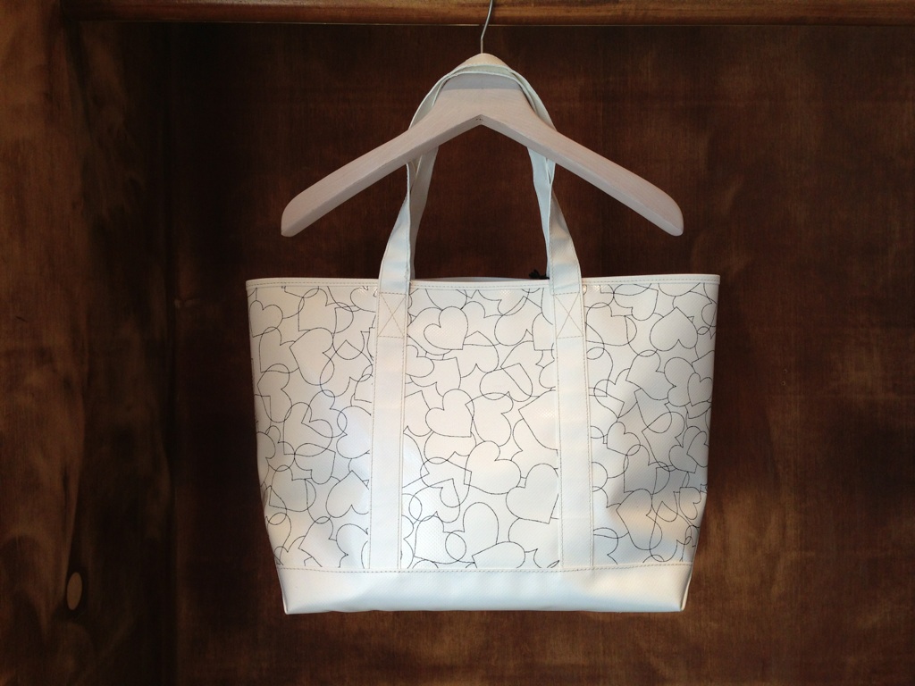 line heart tarpaulin tote bag