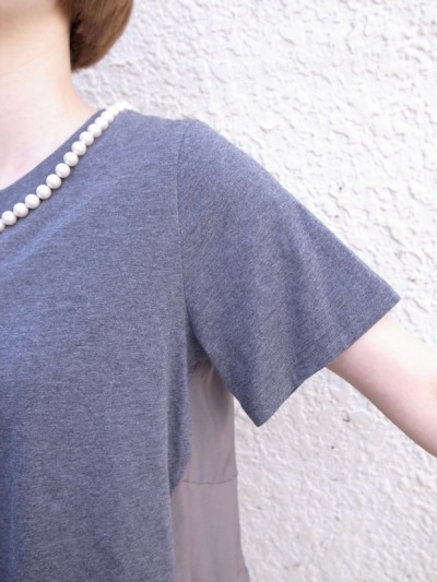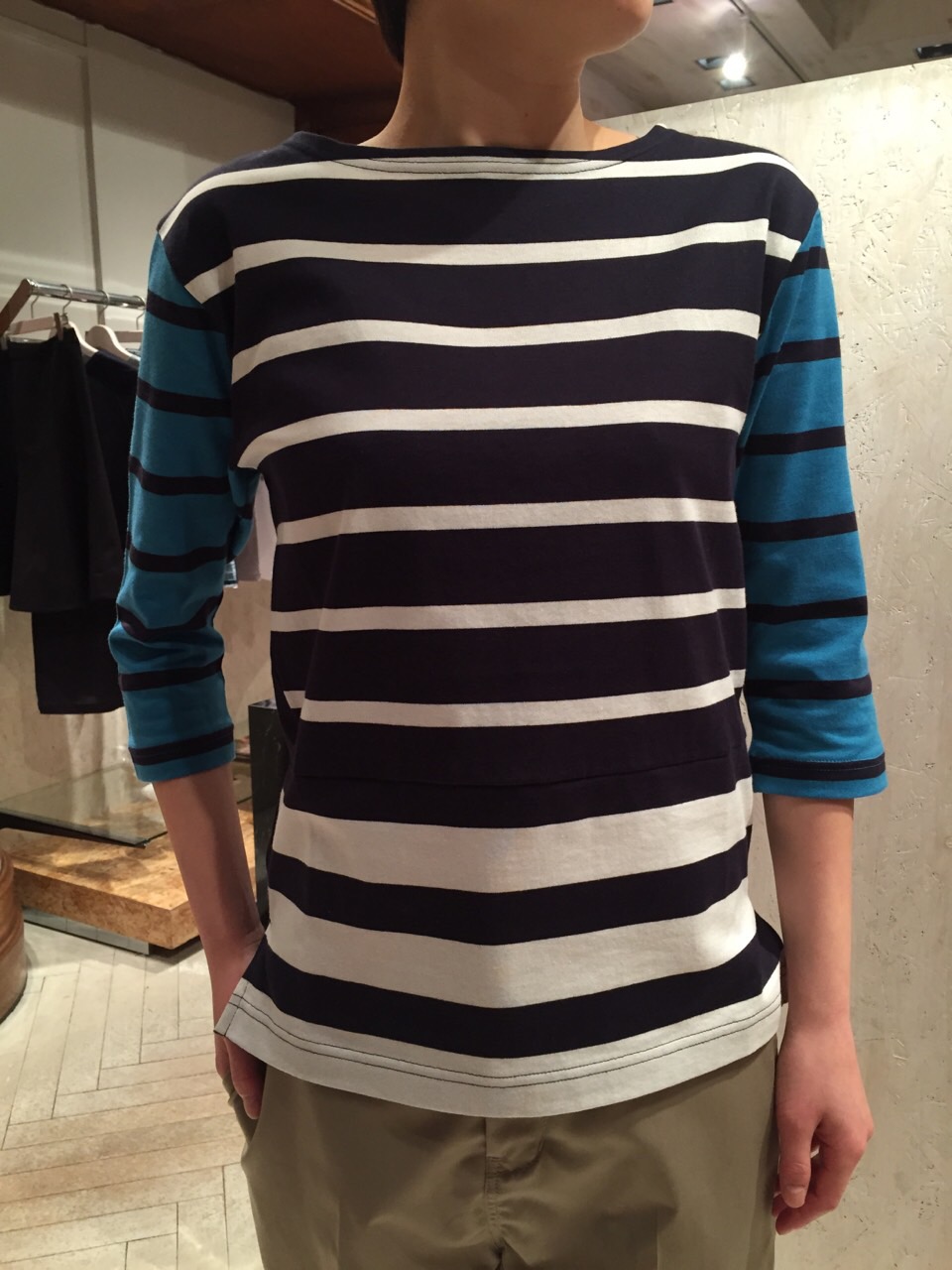 着丈はチュニックぐらいなんですが、裾がリブになっているので上げても着れます。