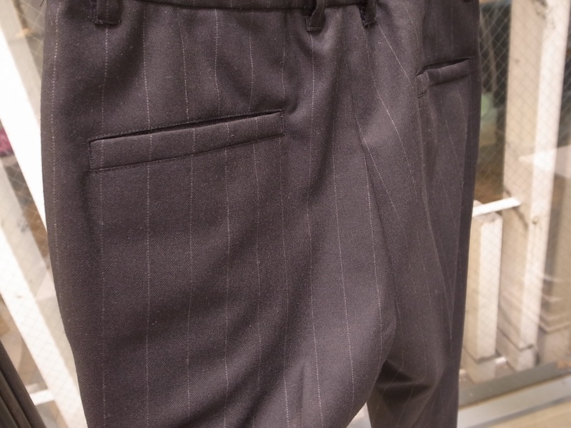 ストライプウール地を使用した、サラッとした履き心地のトラウザーパンツ、