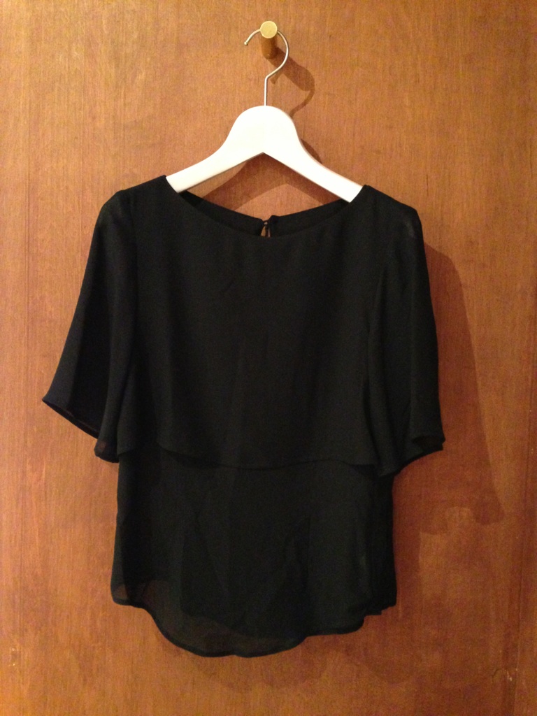 一見、ポンチョのようにも見えるシフォントップス。