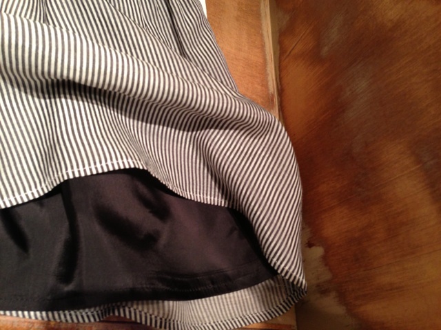 透け感のある肌を滑るようなシルク混クロスに細ピッチのストライプをオン。