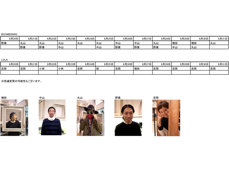 題名にもある通り、スタッフ出勤リストを掲載いたします。