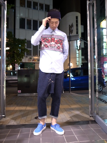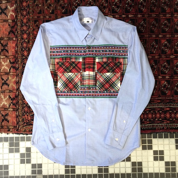 上質なブロードのシャツに、胸部にタータンチェックのネル素材をドッキングしています。
