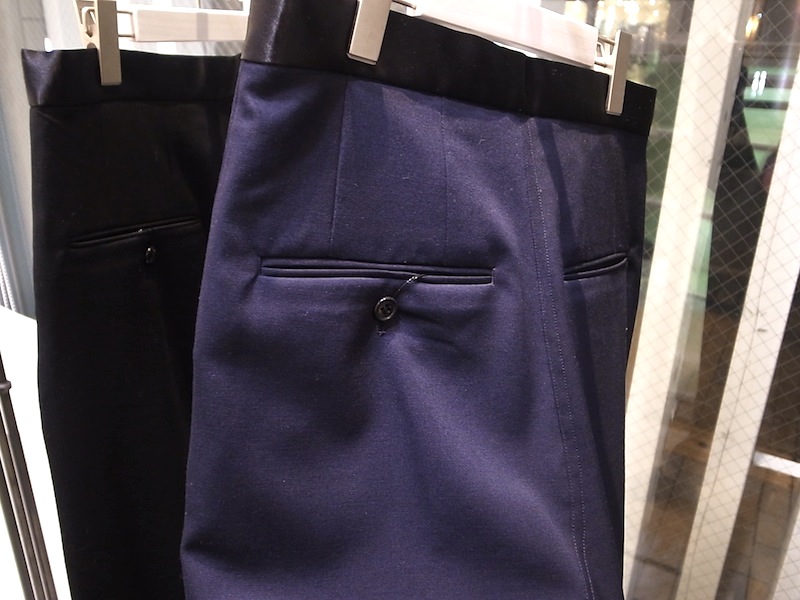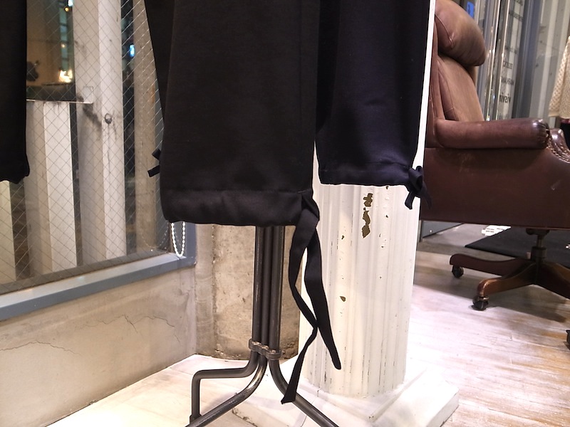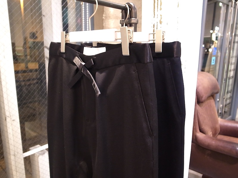 スラックス調のウール素材で作られた得意のサルエルパンツ。