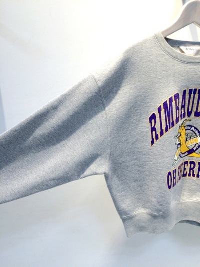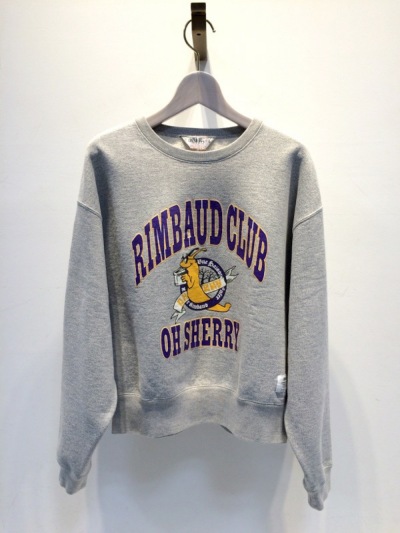 カレッジ風のヴィンテージプリントがポイントのゆったりとしたシルエットが程良くカジュアルなグレーのスェット。GREED Internationalや、BED&BREAKFASTの商品ともハズシとしてコーディネ―トしてもgood!!