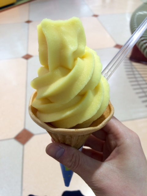 いつもはここの場所でジュースを頼むのですが、グルメ吉岡の血が騒ぎ、初めましてのソフトクリームを頼んでみました。