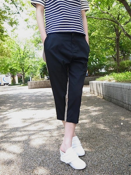 腰回りはややゆったりした履き心地で、太ももから裾にかけて細身になっているので、足をスッキリ見せてくれます。