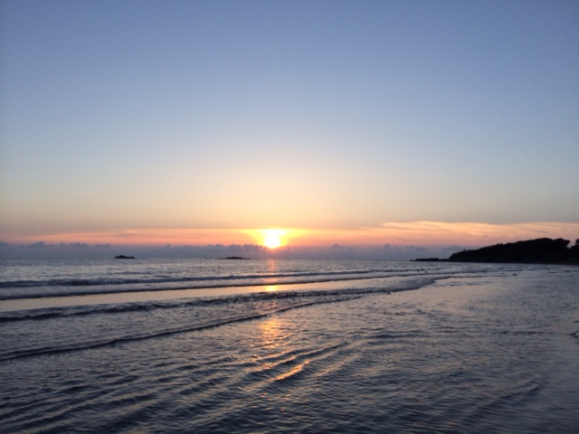 真っ青な空、大きな雲、果てしない海、オレンジ色の夕日。