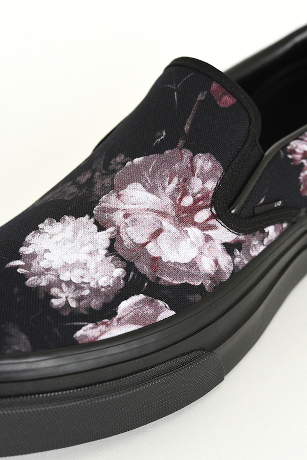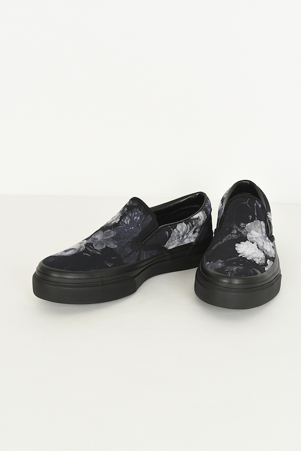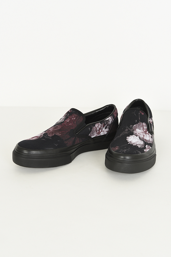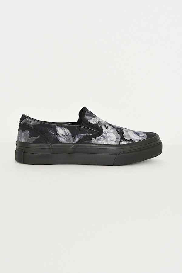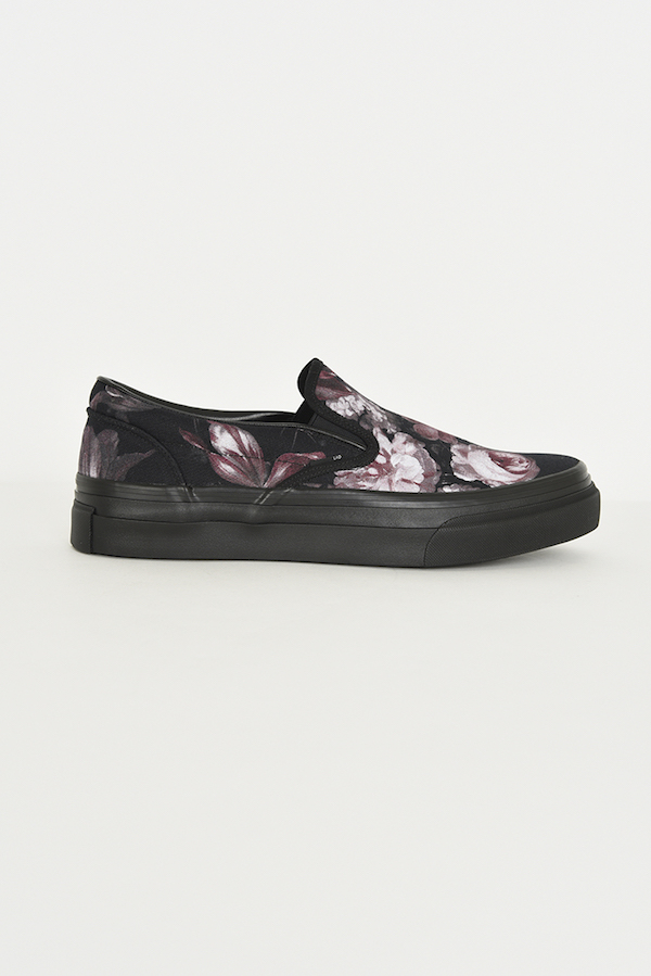 フラワー柄をプリントしたキャンバス素材を使用したスリッポン