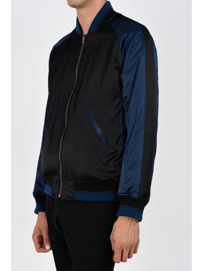 表面にナイロン、裏面に綿/レーヨンの異なる素材を使用したリバーシブルブルゾン。