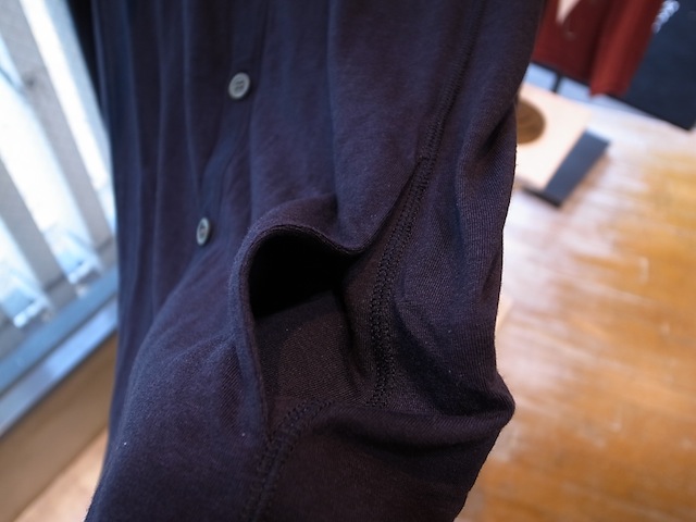 素材の持つストレッチ性と袖下から脇に設けたガゼットにより、