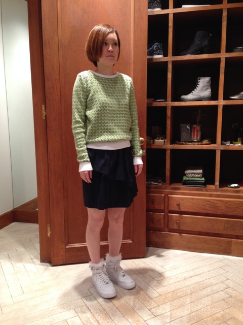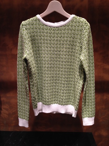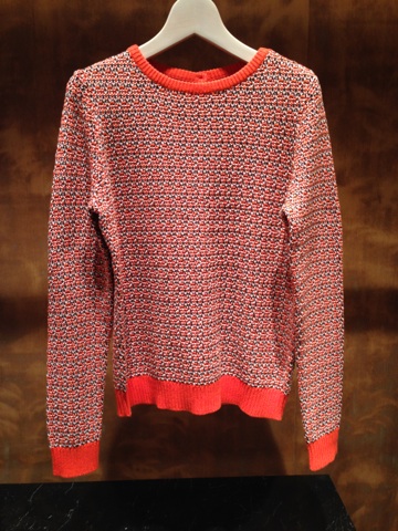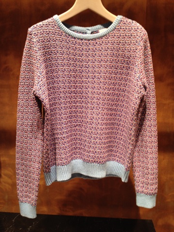 明るいミックスニットのカラーが目を引きます。