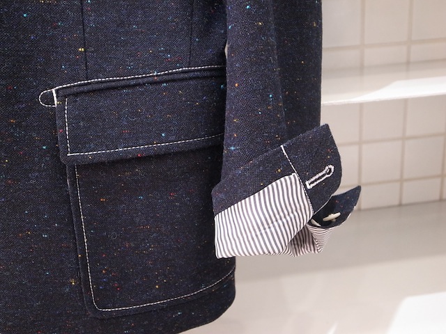 オリジナルで仕立てたカラーネップホームスパン生地を使用したダブルポケットブレザーです。