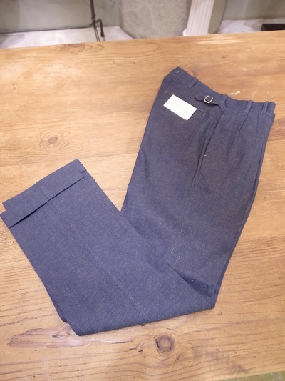 そして、珍しいチノパンのインディゴタイプも合わせて入荷しています。