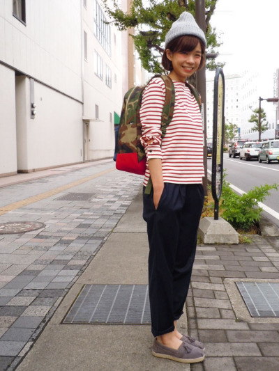 ボーダートップスやバックパックでカジュアルなコーディネートにもピッタリ!!