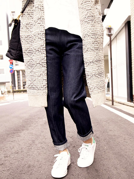 13オンスのリジットデニムで硬さがあり、スラックスに近い感覚で穿けるデニムです。