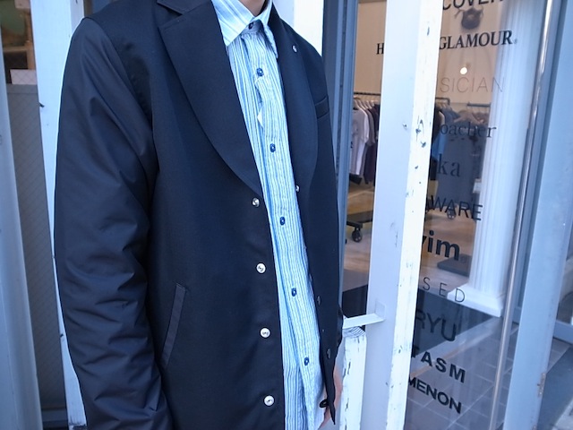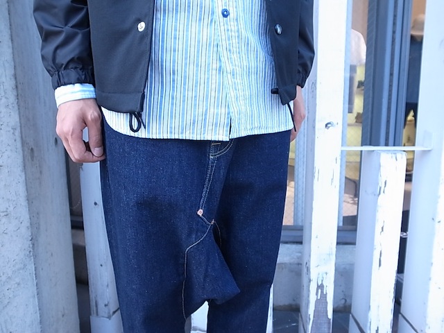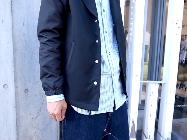 すぐに着て頂けるストライプシャツや秋口にぴったりな薄手素材を使った切り替えコーチジャケット等、早速コーディネートして着用してみました。