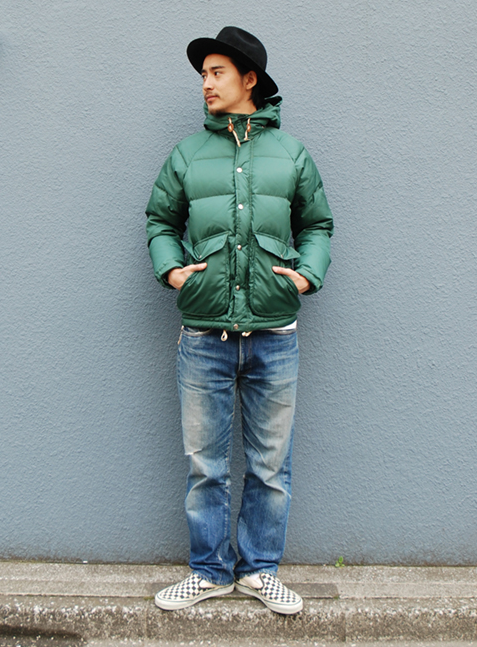 70年代のアウトドアブランドのものをイメージに作り上げたダウンジャケット。