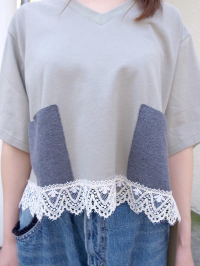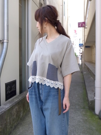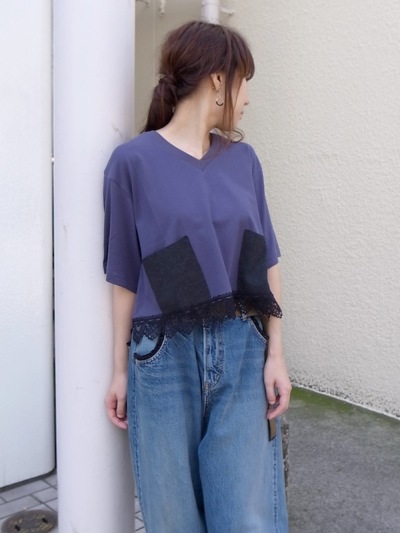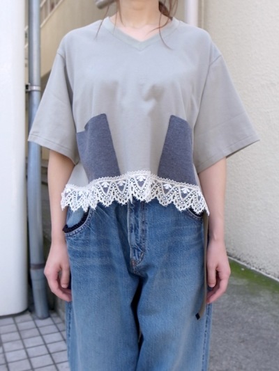 Sue UNDERCOVER(スー アンダーカバー) SUT1802 Vネック裾レース半袖ショートCS
