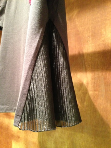 両サイドはプリーツの切り替えになっており、カジュアルさの中にエレガントの部分も。