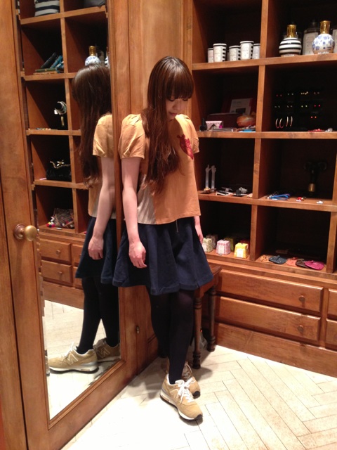 フレアスカートと合わせてみましたが、コンパクトサイズなので合いますね♪