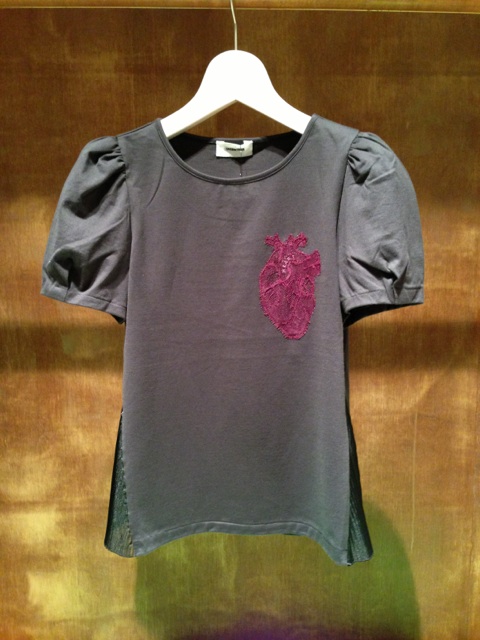 心臓レース付脇プリーツカットソー