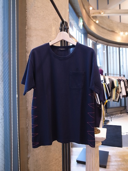 一見シンプルながらも、脇下に施されたカラーステッチが斬新な印象を受ける一枚。