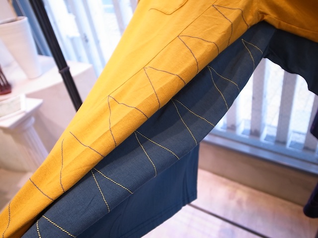 MUSTARDはブルーステッチ、D.GREENはイエロー、NAVYはピンク、