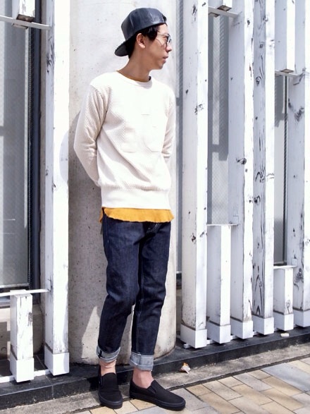 コーディネートで使用したUNUSEDのニットはラスト一点となりました。