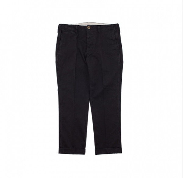 超長綿を使用し高密度に織り上げたチノ製クロップドパンツです。硫化染めのワンウォッシュ