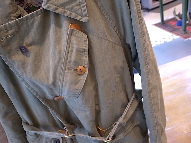 綿麻を使用しSZ撚りされたオリジナルヘリンボーン製トレンチコート。