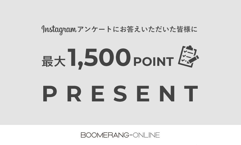 BOOMERANG-ONLINEのインスタグラムアンケートにご回答&ご登録で最大1,500ポイントプレゼント!